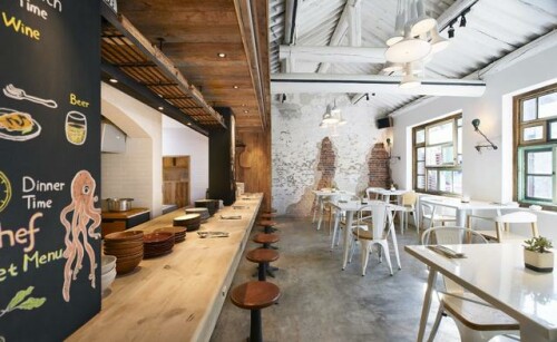 門頭招牌靜謐、舒服、溫柔、格調、生機盎然這種全是西餐店的代稱,應用初始、大自然的裝飾設計原素,古典主義透著簡美風格,另配上爛漫的布拉格風韻,讓室內空間設計流蕩著這種大自然、爛漫的氛圍,樸素而頗具活力。